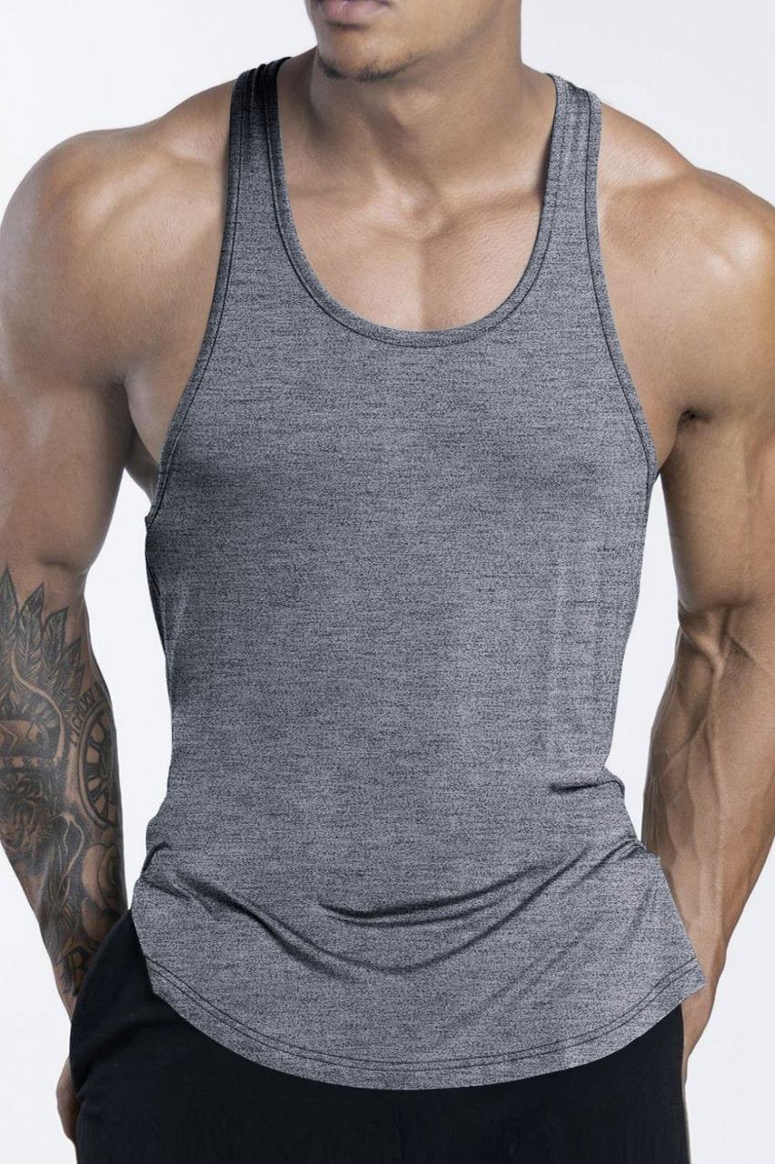 Чоловіча спортивна майка-борцовка Apmi у сірому кольорі — ідеальний вибір для тренувань у спортзалі, занять фітнесом, бігом чи іншою активністю. Виготовлена з високоякісного полиэфирного волокна (полиэстер, 100%), тканина легка, дихаюча та еластична, що забезпечує свободу рухів і комфорт навіть під час інтенсивних навантажень. Матеріал швидко відводить вологу, швидко сохне та не втрачає форму після прання. Майка підкреслює спортивну фігуру, зручний крій-борцовка відкриває спину та плечі, роблячи тренування ще комфортнішими.